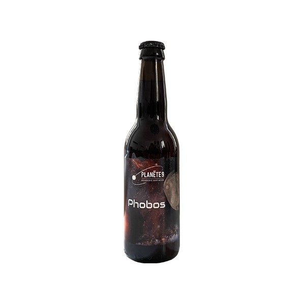 Phobos est une bière ambrée bio avec des notes de caramel et café. Elle est produite dans la Sarthe par la brasserie Planète 9.