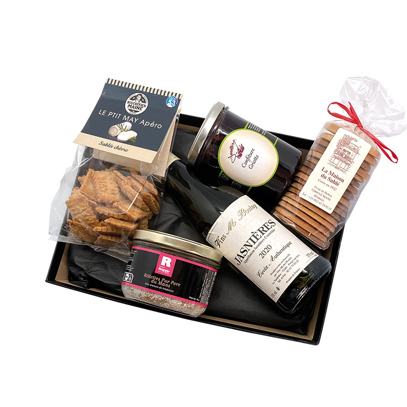 Pour cette jolie corbeille de produits sarthois, la Conciergerie du goût a sélectionné pour vous