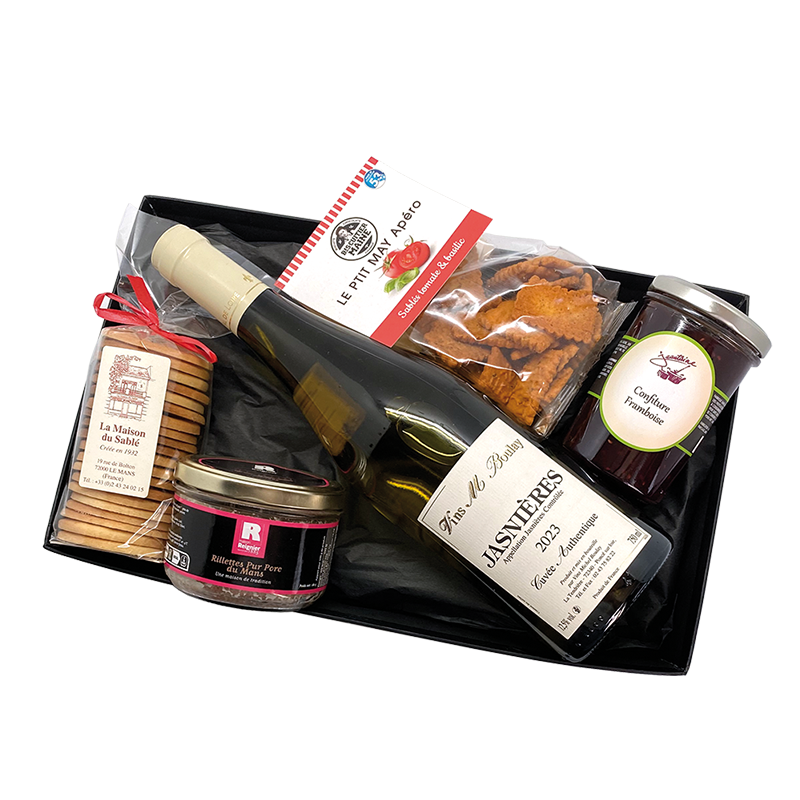 Pour cette jolie corbeille de produits sarthois, la Conciergerie du goût a sélectionné pour vous