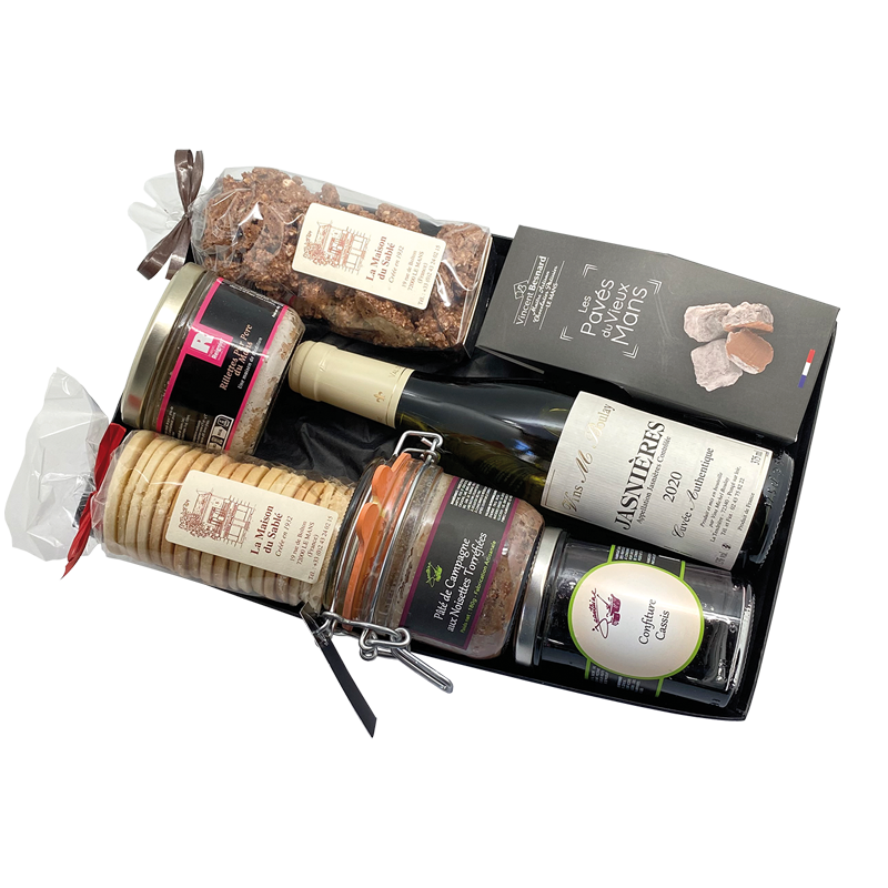 Pour cette jolie corbeille de produits sarthois, la Conciergerie du goût a sélectionné pour vous