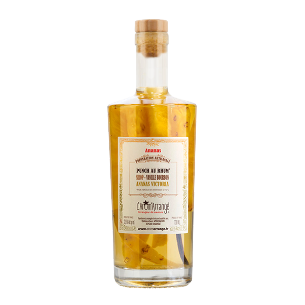Un Joli mélange de passion, gourmandise et de soleil. Cet arrangé à l’ananas victoria ou « Queen Victoria » a un goût à la fois sucré, doux et parfumé. D’une jolie couleur blond doré.