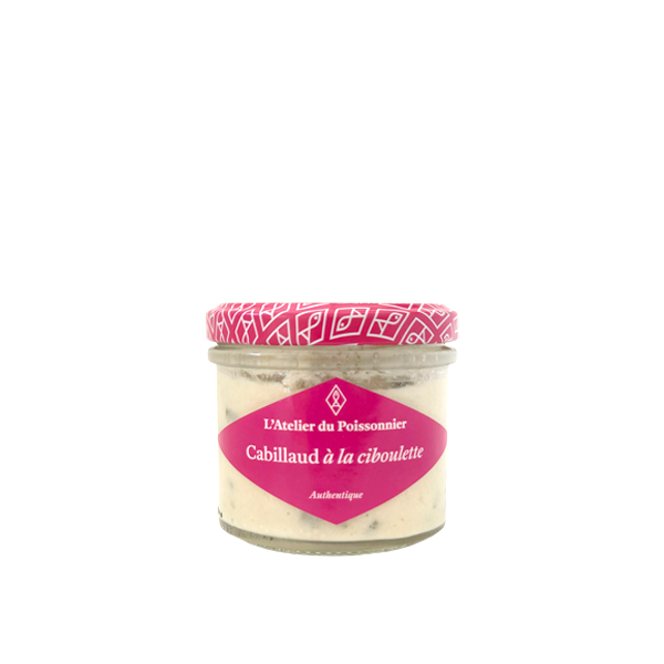 Ce pot de cabillaud à la ciboulette de l’Atelier du poissonnier est à déguster sur des crackers ou du pain grillé, en verrines ou cuillères apéritives, en entrées mixtes sur assiettes pour combiner différentes rillettes et légumes.