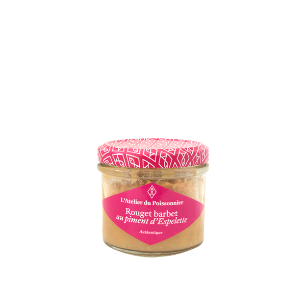 L’Atelier du poissonnier propose de délicieuses rillettes et tartinades. Ce pot de rillettes de rouget barbet au piment d’espelette se déguste sur des crackers ou du pain grillé, en verrines ou cuillères apéritives, en entrées mixtes sur assiettes pour combiner différentes rillettes et légumes.
